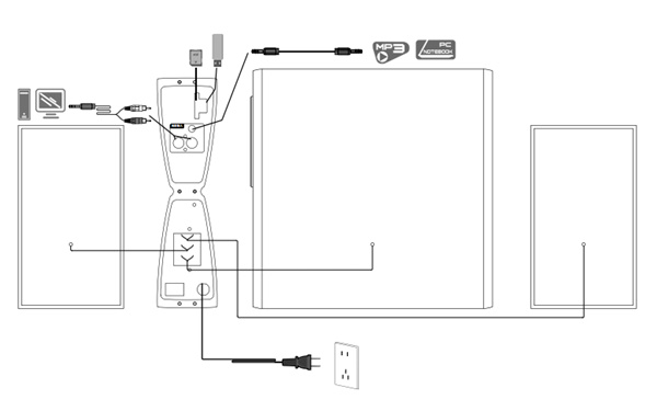4、将主音箱与输入设备连接。