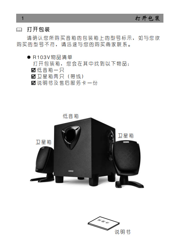 您所在的位置:智能资讯>教程>漫步者R103V多媒体音响产品使用说明书
