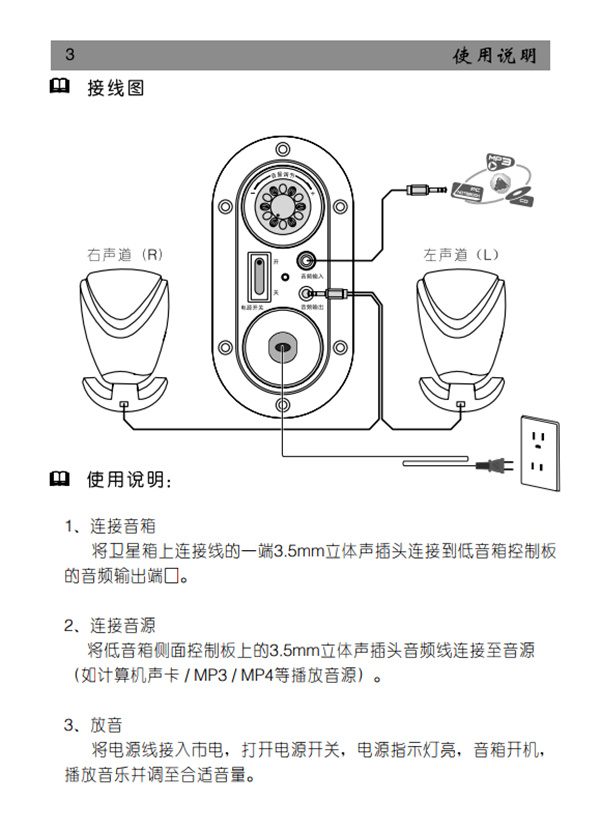 漫步者R103V多媒体音箱怎么接线漫步者R103V多媒体音箱没有声音的解决方法漫步者R103V多媒体音响产品使用说明书