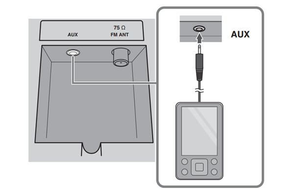 3、按 SOURCE,并将 AUX 设定为播放音源。