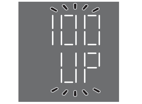 — 固件开始更新,当更新完成时, “100 UP”指示会闪烁。