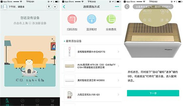 惠而浦智能空气净化器搭载了远程WIFI操控功能,我们可以在应用商城下载阿里小智APP,通过提示绑定。