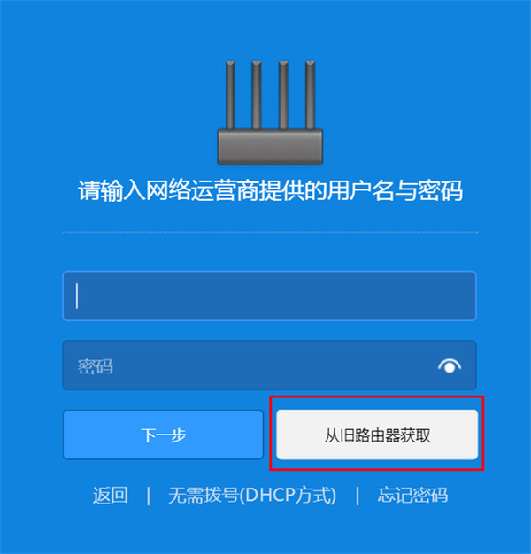 输入运营商提供的宽带账号及密码,当然也可以从旧路由器中获取。