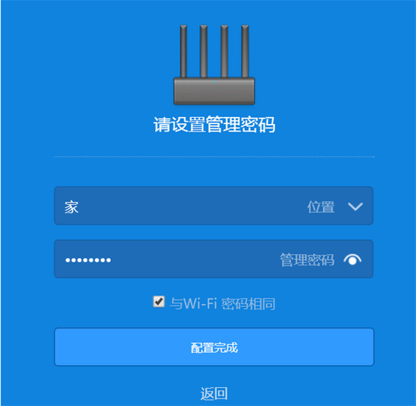 设置管理员密码,这里注意“与WiFi密码相同”这一选项是否选上。