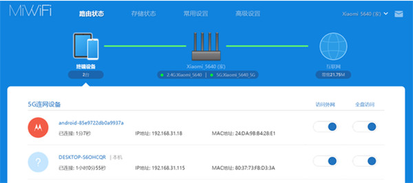 小米路由器的设置与其他路由器的设置都是大同小异,只是在存储状态这一栏需要注意,这可以对路由器硬盘进行管理管理,这也是小米路由器HD的特色。