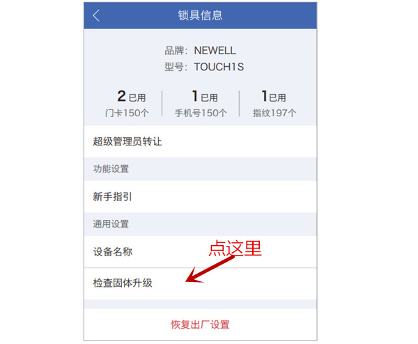 以上就是关于纽威尔Touch1S指纹锁怎么检查固件升级的全部内容。获取更多智能锁相关资讯尽在智能家(https://www.znj.com/lock/)!
