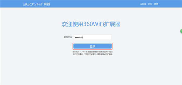 连接扩展器发出的WiFi信号热点,在浏览器地址栏中输入“luyou.360.cn”,输入扩展器的管理密码后,点击“登录”按钮。