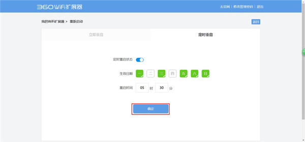 至此,360WiFi扩展器的定时重启设置就完成了。