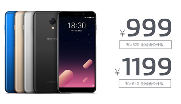魅蓝S6提供两个版本3G+32G售价999元起;3G+64售价1199,将于1月19正式发售