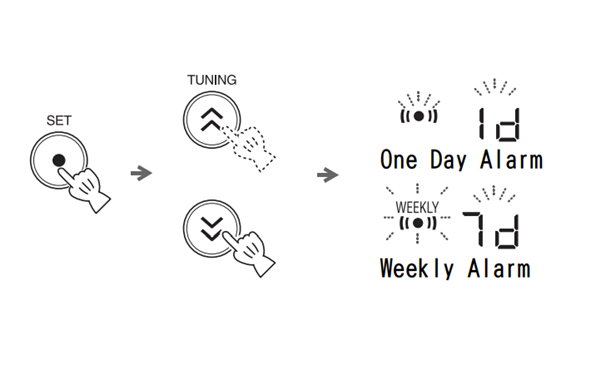 只要您已用 “DTA CONTROLLER”设定 Weekly Alarm,就可以在本机的闹铃模式选择显示画面中选择 Weekly Alarm 模式。