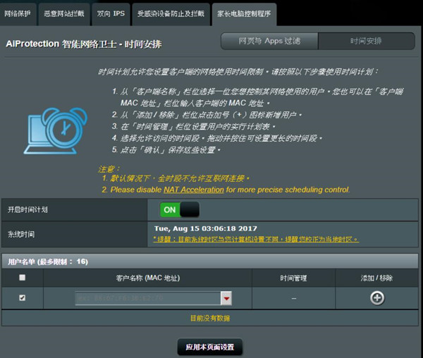 以上就是关于华硕RT-AC86U路由器怎么控制设备上网时间的全部内容。获取更多路由器相关资讯尽在智能家(https://www.znj.com)!