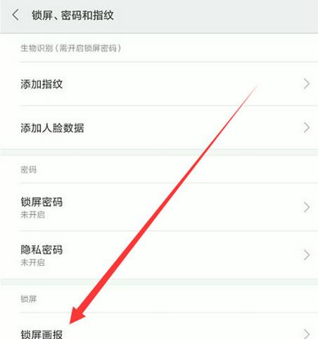 进入到锁屏、密码和指纹界面,然后点击【锁屏画报】选项。