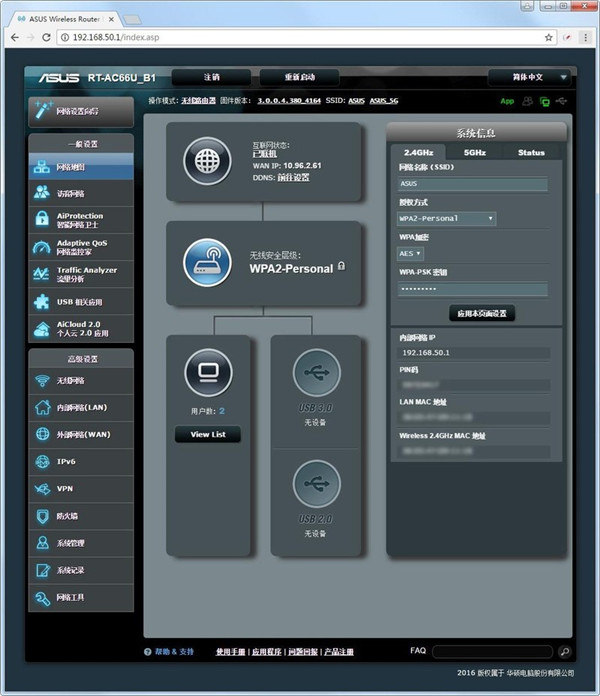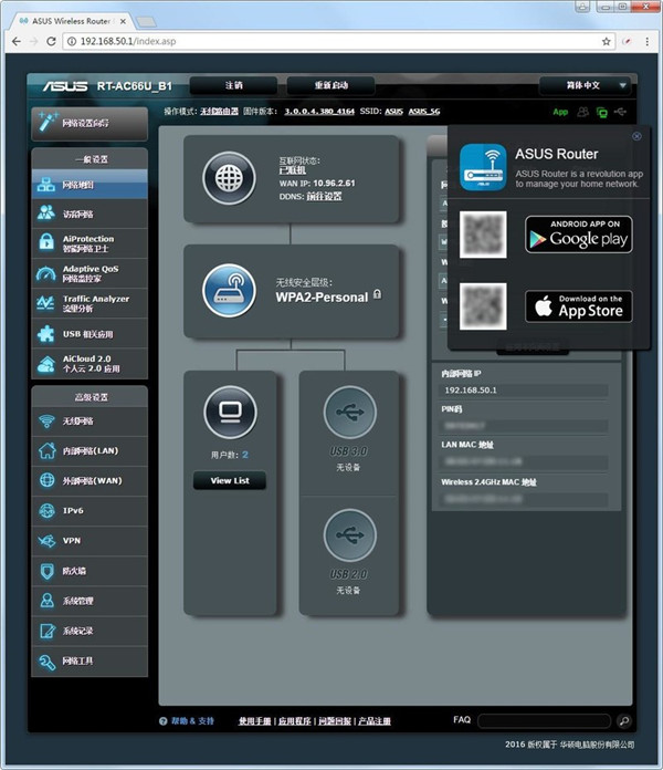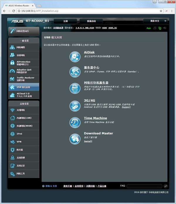 可刷改版梅林固件是AC66U B1在软件上的一大优势,但对于像我这种不折腾的人来说,即使原生固件的功能感觉已经够用。