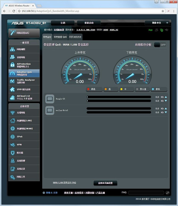 自带的QoS管理,简单直观,感觉比网件的QoS设置更加容易上手。