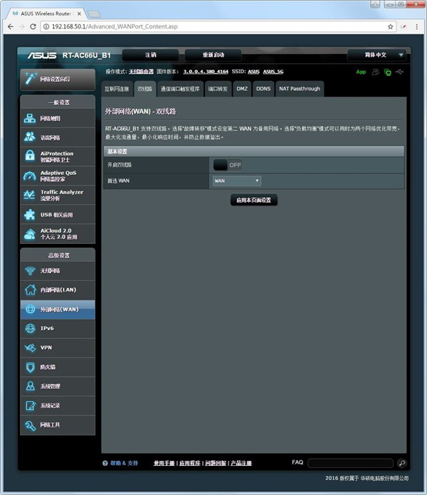 原生固件已经支持双线路,想当年为了这个功能还要刷机,现在简单多了,不过现在宽带网速也跟上来了,双线路我是暂时用不上了。