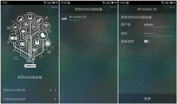 安装APP啥的很简单,我就不再啰嗦了,打开APP之后会自动搜索华硕自家的路由器,连上去就可以进入下一步了。