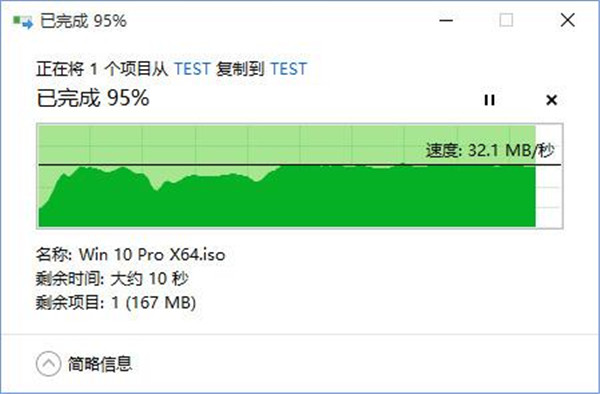 下面是5G频段下的USB 3.0写入速度。话说这个跟无线网卡也有一定的关系,所以仅供参考吧。