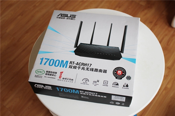 在路由器的右上角,除了品牌LOGO外,还标示出了这台路由器的无线速率1700M,经过后期的了解,这款华硕RT-ACRH17应该是隐藏了真实的总速率。
