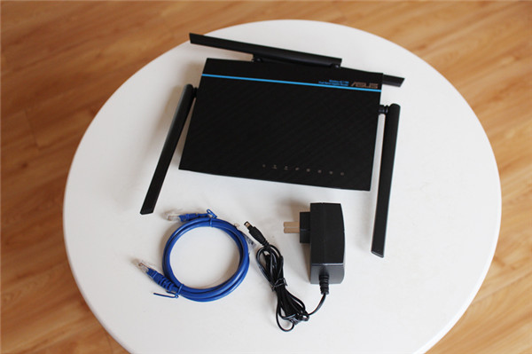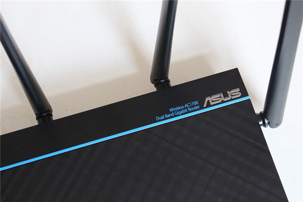 网线和电源就不在这里单独说了,大厂的做工自不必担心,我们把重点放在路由器本身。这台华硕RT-ACRH17无线路由器的外观非常经典,一眼看上去很像RT-AC1200,而最大区别是在机身的正面设计了一根蓝条,与前代产品有所区别,天线不可拆卸。正面采用了经典的黑色加钻石切割网纹的面板设计,高端大气上档次。