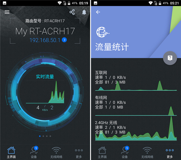PC浏览器端似乎没有什么说的,界面信息量很大,但只要认真阅读,新手也可以很轻松的完成设置。我今天在这里主要想说说华硕路由器移动客户端的使用情况。