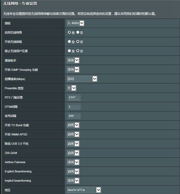 好,上面简单的说了华硕RT-ACRH17路由器的移动客户端功能,下面我要说说无线信号强度方面。其实在默认的情况的,华硕路由器的无线发射功率并不大,所以它的无线信号穿墙能力也不强,这也是为了绿色上网的要,毕竟和信号强度比起来,身体健康方面更重要。但有时候,特别是家里房间很多的情况下,我们又的确需要路由器具备更高的无线信号穿墙能力。所以在路由器的PC设置页面,华硕为我们提供了“地区”的选项,通过对地区的改变,我们能够获得更强的无线信号,这是一个值得尝试的功能哟。