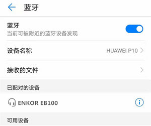 3.此时安卓手机的蓝牙设备搜索列表上会出现恩科eb100耳机的名字,如果没有,请尝试刷新蓝牙功能界面。选择“ENKOR EB100”按照安卓手机上显示的说明步骤配对连接。