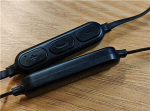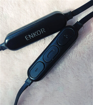 线控板位于恩科eb100耳机左侧耳塞下方,中间的按钮是多功能按钮,“+”“-”号按钮分别位于两侧,通过对这些按钮的操作可以对耳机上播放的音乐进行控制。