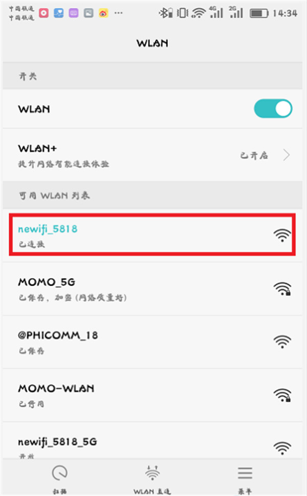 手机连接新路由信号,WiFi名称可在路由器底部标签查看。