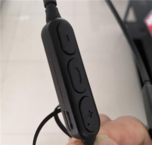 线控板位于恩科eb200耳机左侧耳塞下方,中间的按钮是多功能按钮,“+”“-”号按钮分别位于两侧,通过对这些按钮的操作可以对手机上的来电进行控制。