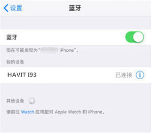 4.此时iPhone的蓝牙设备搜索列表上会出现Havit I93耳机的名字,如果没有,请尝试刷新蓝牙功能界面。选择“HAVIT I93”按照手机上显示的说明步骤配对连接。