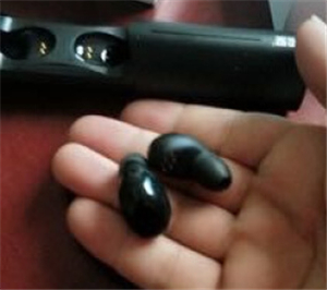 2.将索爱f3耳机充电盒打开并将耳机拿出,此时耳机上的指示灯蓝灯光闪烁,进入配对状态。