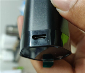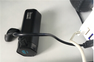 3.使用充电线比较小的一端插入充电盒的充电接口,将充电线比较大的一端连接到 USB 电源上或与 USB 充电接头连接并插入电源。
