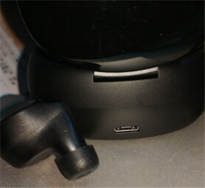 1.索爱sa2耳机的充电盒充电接口在盒子的后侧,可以看到采用的是 micro USB 充电接口。