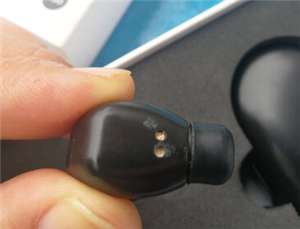 2.再看耳机主体,两边耳机底部都有内凹的金属触点,这是和充电盒磁针接触的地方。