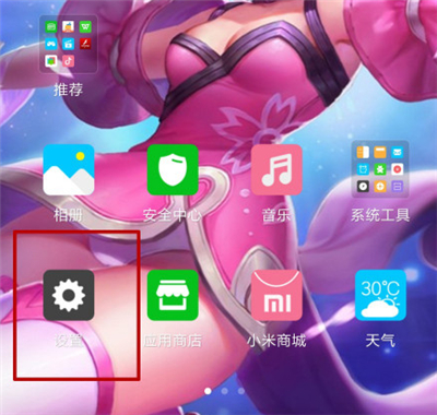 1.点亮红米note5a手机屏幕,打开设置