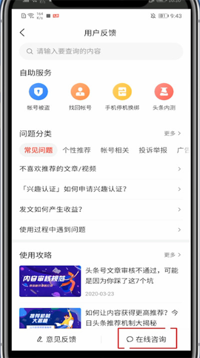 今日头条怎么联系客服?首先打开今日头条APP,点击右下角我的,点击“用户反馈”,点击右下角的“在线咨询”即可联系客服,下面小编为大家带来方法。