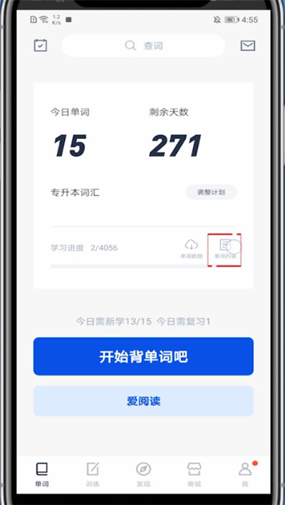 2、点击单词,点击单词列表
