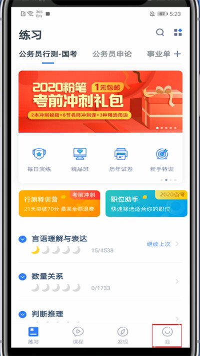 2、点击右下角我的