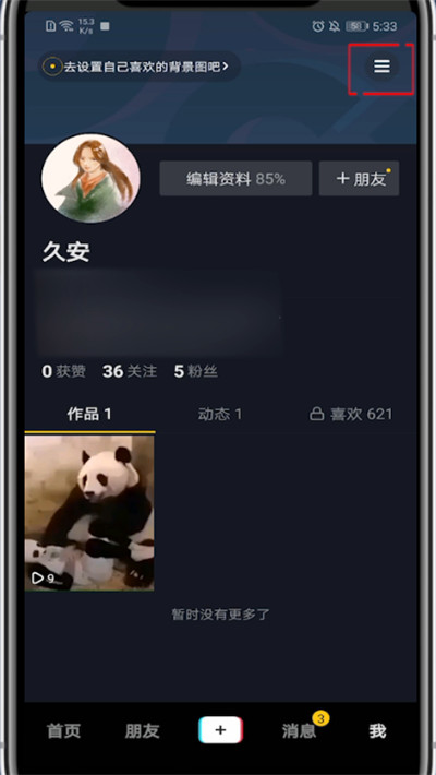3、点击右上角的三条杠