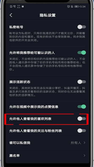 6、取消勾选允许他人查看我的喜欢列表即可