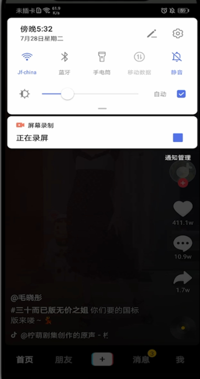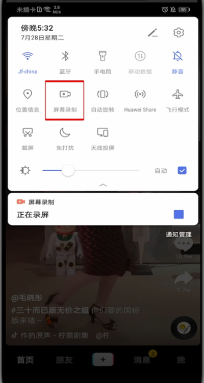 华为手机抖音怎么录屏?首先我们打开华为手机,点击抖音,找到你要录屏的页面,下滑手机菜单栏,点击录制即可,下面小编为大家带来方法。