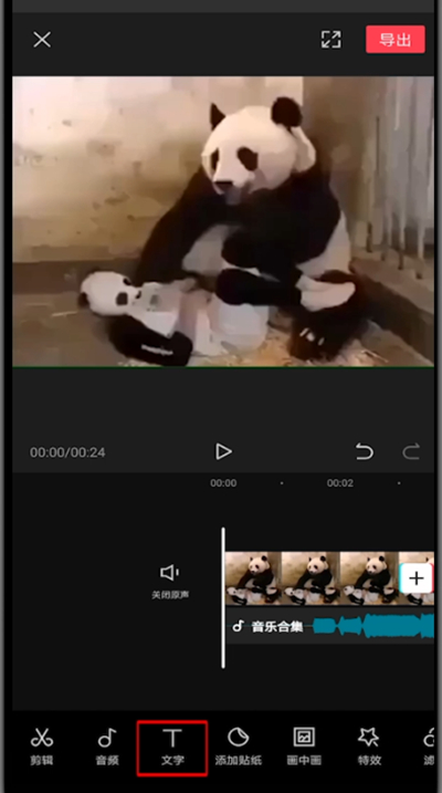 4、导入一段音乐后点击文字