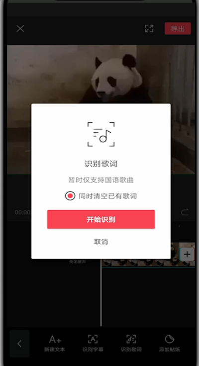 5、选择新建文本手打字幕或者识别歌词即可