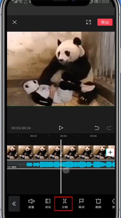 5、点击音乐条,点击切割