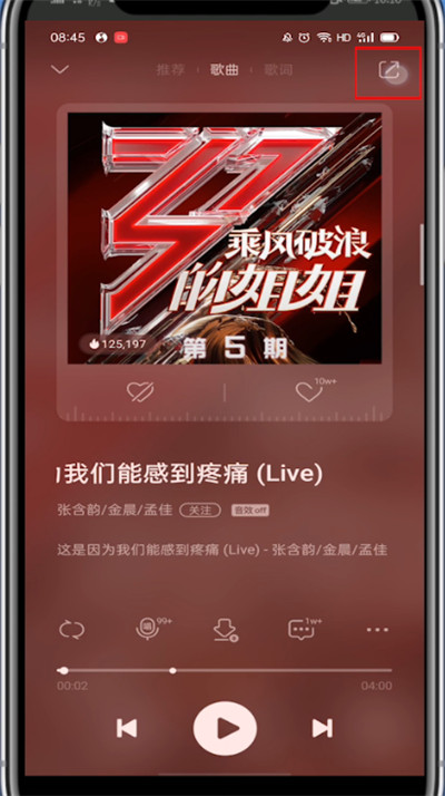 2、打开一首歌曲,点击右上角的分享图标