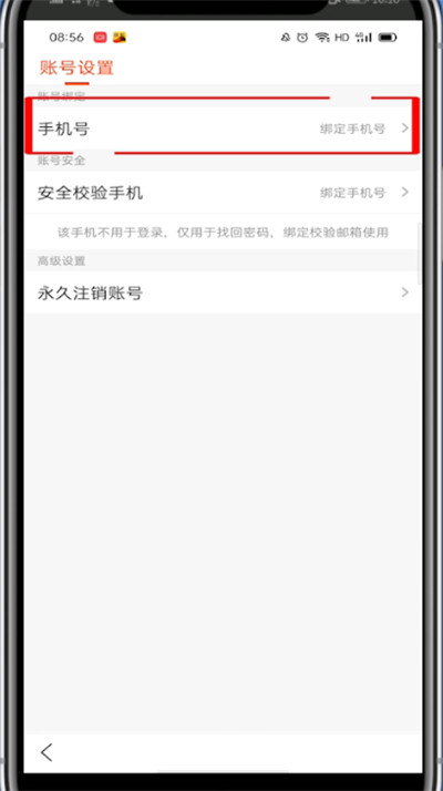 6、如果已经绑定了手机号,点击手机号即可验证更改