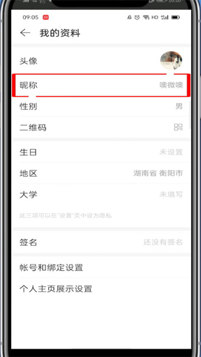 5、找到昵称点击即可修改