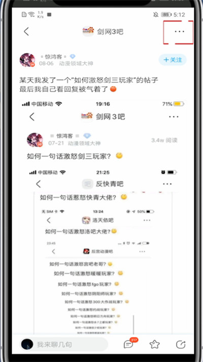2、打开你喜欢的帖子,点击右上角的三个点