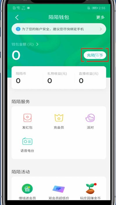 4、点击充陌陌币