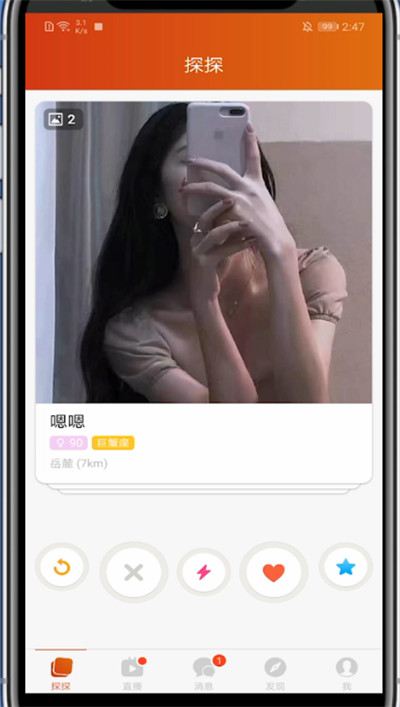 2、上传自己的精美自拍后点击首页,看到喜欢的照片右滑